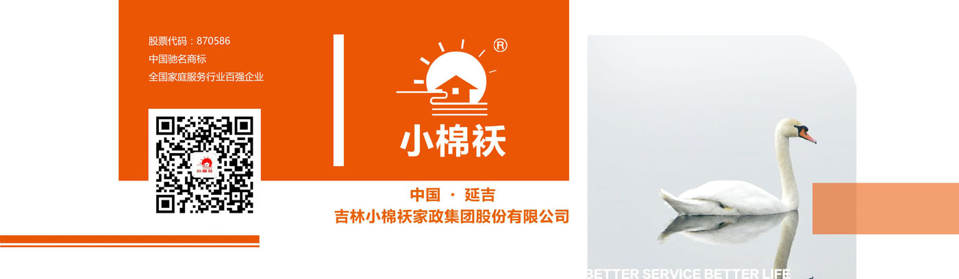 吉林小棉襖家政集團股份有限公司成立于2004年6月3日,注冊資本4020萬元,主營業(yè)務有物業(yè)管理、培訓學校、家政服務,勞務派遣、保安、保潔服務等。先后安置下崗職工和農(nóng)村剩余勞動力就業(yè)二萬多人。公司先后榮獲:全國家庭服務行業(yè)知名品牌單位、全國優(yōu)秀民辦職介機構、全國家庭服務行業(yè)百家誠信企業(yè)、中國清洗保潔十大標兵企業(yè)、吉林省十大服務業(yè)品牌、吉林省守信用重合同單位、吉林省馳名勞務品牌、吉林省誠信維權先進單位、吉林省清費者滿意單位等榮譽稱號。2011、2012連續(xù)二年被評為全國家庭服務行業(yè)百強企業(yè)。